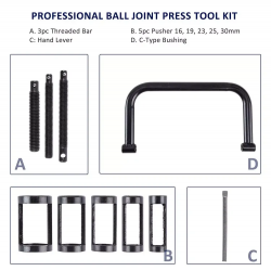 Incluye 5 bujes adaptadores de metal para diferentes tamaños de valvulas : 16 , 19, 23 ,25, 30 mm