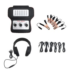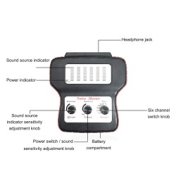 Inserte los auriculares conector en el conector para auriculares y luego sujete las seis pinzas de cocodrilo alrededor del área defectuosa de la máquina. Según el color y la posición del clip, seleccione el canal correspondiente, encienda el amplificador y ajuste el volumen para escuchar el sonido de la máquina, de modo que la máquina pueda diagnosticarse según la frecuencia y el tono del sonido.