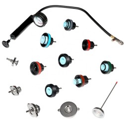 El probador ayuda a detectar fugas internas y externas. Perfecto para la detección de fallas en la junta de la cabeza (qué lado del bloque o qué cilindro tiene fugas). Válvula de alivio operada con el pulgar para una liberación de presión rápida y fácil y componentes de desconexión rápida con bloqueo automático.