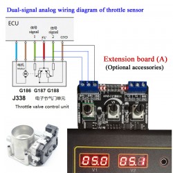 1. Señal que simula cambios de voltaje. La relación de las dos señales de voltaje V1 y V2 es ajustable. Sensor de flujo de aire, de presión del aire de admisión,de presión de aceite, de presión de sobrealimentación, de presión de riel común. Sensor de oxigeno. Sensor del pedal del acelerador (2:1), etc.