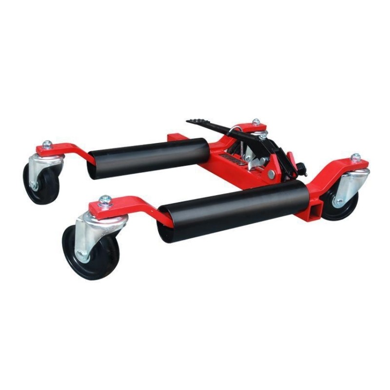 Mueva vehículos sin esfuerzo en espacios reducidos con nuestro Dolly Hidráulico de Alta Resistencia. Este posicionador permite elevar neumáticos de hasta 12" de ancho mediante un pedal hidráulico suave, facilitando giros de 360° en talleres, garajes o salas de exhibición. Fabricado en acero reforzado con capacidad de 680 kg (1500 lbs) por unidad, es la solución perfecta para acomodar autos que no arrancan o maximizar el espacio en su local. ¡Maniobrabilidad total con un solo operario!