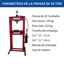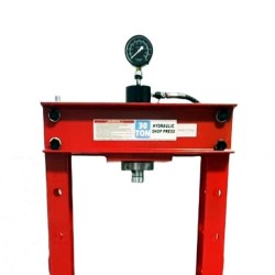 Prensa Hidráulica de Taller de 30 Toneladas, diseñada para trabajos pesados de montaje, desmontaje, enderezado y doblado de piezas metálicas. Es un equipo esencial para cualquier taller mecánico o industrial que maneje rodamientos, bujes y juntas.