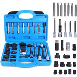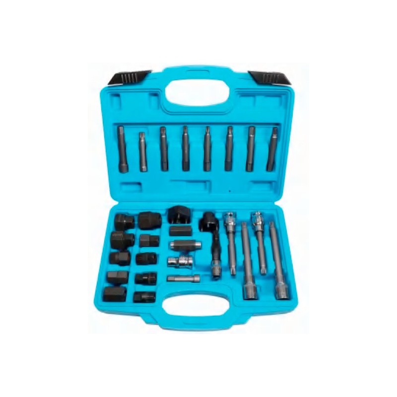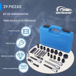 Esta herramienta se utiliza para quitar e instalar alternadores a presión, bombas de dirección asistida y otras poleas. Mantiene el eje del alternador en su lugar mientras retira el retenedor de la polea, ayudando a los mecánicos y aficionados a realizar el trabajo de forma rápida y segura. Los kits de poleas de alternador contienen una gama de combinaciones de adaptadores TRX-Star, spline y hexagonal para la mayoría de los alternadores.