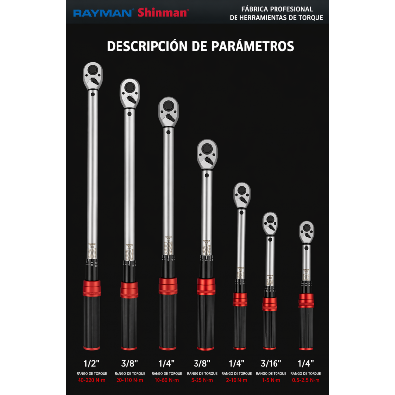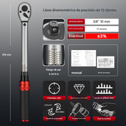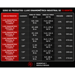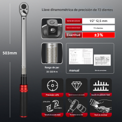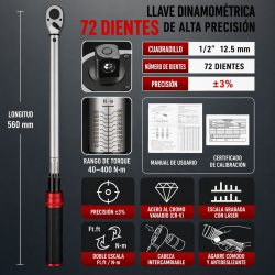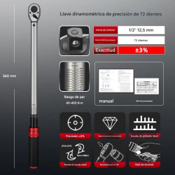 Con ajuste bidireccional, la llave dinamométrica puede girar en sentido horario y antihorario para trabajar, con un trinquete rápido incorporado.