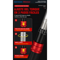 Deje de aplicar fuerza mientras escucha el clic. Al alcanzar el par deseado, se emitirá un clic. Cuanto mayor sea el par, más fuerte será el sonido.