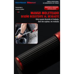 Con diseñó un mango moleteado antideslizante que facilita el agarre, haciéndolo más cómodo y fácil de usar.