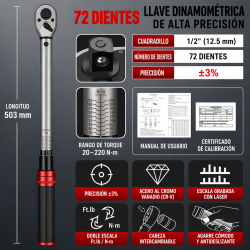 Cuenta con un alto contraste y una escala de doble rango (40-320 ft.lb/54,2-433,6 nm), lo que facilita su lectura.