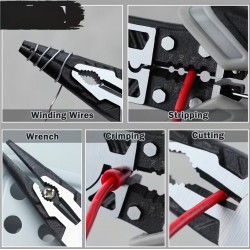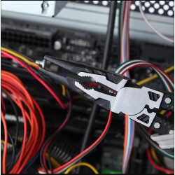 estos alicates integran 6 funciones en 1: corte de precisión, pelador de cables multitalla, prensado de terminales, escariado y sujeción de alta potencia.