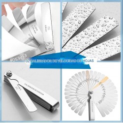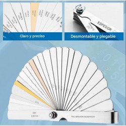 Rango de Medición Extendido: Con 32 hojas, cubre desde los espacios más finos (0.04 mm) hasta huelgos mayores (0.88 mm), siendo compatible con motores de motos, autos y maquinaria pesada.