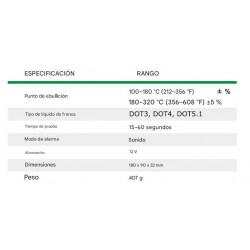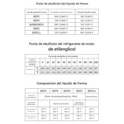 - Referencia de liquido de frenos DOT3, DOT4, DOT5.1 disponible.