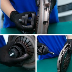 - Componentes de nylon con eje principal de latón. Permite que la placa de embrague y la placa de presión se ensamblen en el banco, haciendo que el cambio de embrague sea una operación con una sola mano