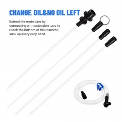 Extienda el tubo principal conectándolo con el tubo de extensión para llegar al fondo del depósito y succione hasta la última gota de aceite