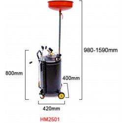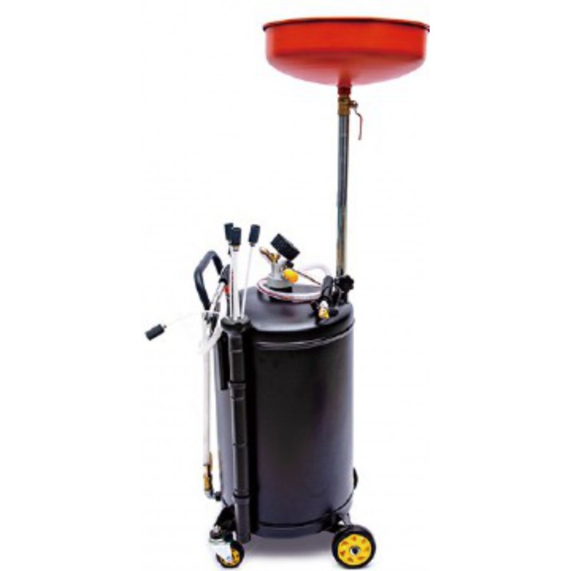 Este drenador y succionador de aceite está diseñado con un embudo grande y un tanque de acero de 80 litros que recolecta rápidamente aceite de motor, líquido de transmisión y refrigerante de debajo de los vehículos montados en elevadores sin ensuciar.