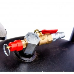 Deposito de metal de 80 litros, transegable a otro deposito (requiere aire comprimido), con manguera de medicion