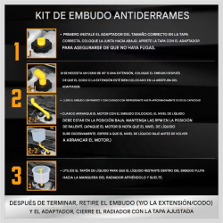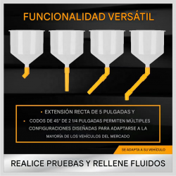 - Se utiliza fácilmente para rellenar correctamente los sistemas de refrigeración automotrices sin la posibilidad de derrames.