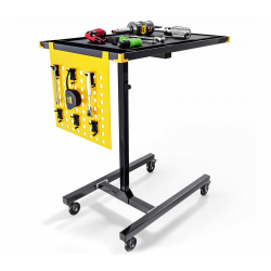 Optimice la eficiencia en su taller con nuestra Mesa de Trabajo Móvil de Altura Ajustable. Diseñada como la estación auxiliar perfecta, esta mesa permite tener sus herramientas, escáner automotriz o piezas desmontadas siempre al alcance de la mano. Su estructura de acero reforzado cuenta con un sistema de elevación telescópica suave y una base de perfil bajo que se desliza fácilmente bajo el chasis de la mayoría de vehículos. Equipada con ruedas giratorias de alta resistencia y una superficie de trabajo antideslizante con bordes de seguridad. soporta hasta 35 KG, y se ajusta su altura de 85 a 120 cm ¡Versatilidad y orden total para el técnico moderno!