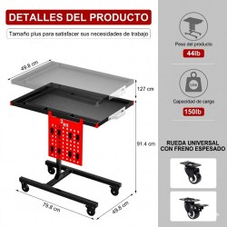 La mesa de trabajo móvil es el complemento ideal para servicios de diagnóstico, mecánica rápida y detallado automotriz. Su diseño inteligente permite acercar el área de trabajo directamente a la zona del motor o la cabina del vehículo, eliminando desplazamientos innecesarios por el taller.