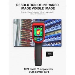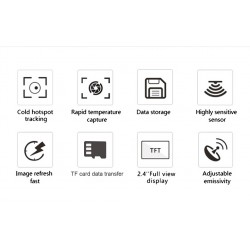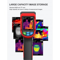 Le ayuda a bloquear rápidamente el área objetivo. La tarjeta de memoria estándar de 8GB puede guardar una gran cantidad de imágenes y datos y generar imágenes infrarrojas de alta calidad, que es una herramienta útil para el mantenimiento de fallas.