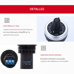 2. Viene con una perilla y un dial, que integra el dial del potenciómetro y la perilla.