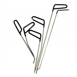 El conjunto comprende 6 varillas de acero templado con mango, con diferentes medias o alcances, y diveros tipos de punta: