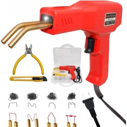 kit de reparación de parachoques de coche, incluye: alicates, grapas planas/exteriores/esquinas interiores/onduladas 50 c/u, máquina de reparación de soldadura, reparación de pistola soldadora (grapadora en caliente color: roja)